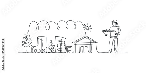 Векторная иллюстрация концепции высшего образования, дизайн в плоском линейном стиле. Молодые люди, поступающие в университет, заканчивают его и получают хорошую работу. Концепция университетской конвейерной ленты.