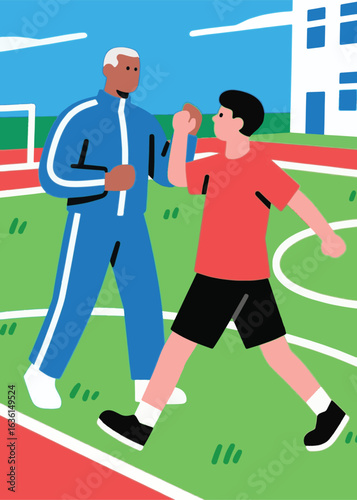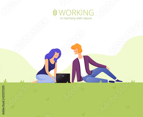 Векторная иллюстрация туристической пары, идущей пешком с рюкзаками. Элемент дизайна плоского стиля для занятий спортом на открытом воздухе.