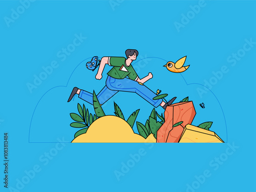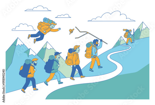 Группа туристов, сидящих возле палатки и готовящих еду на огне, векторная иллюстрация. Концепция кемпинга, пешего туризма, треккинга для веб-баннера, страницы веб-сайта и т.д.