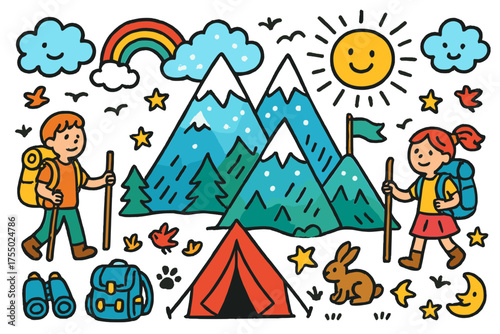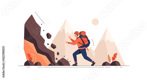 Путешественники мужского и женского пола персонажи с рюкзаками пеший туризм, приготовление пищи на огне, векторная иллюстрация. Треккинг, горный туризм, концепция экспедиции для веб-баннера, страницы веб-сайта и т.д.