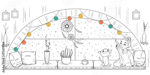 Праздничный баннер концептуальной линии Рождества и Нового года. Векторная иллюстрация линейного стиля дизайна. Графические иконки с элементами игрушек и подарков