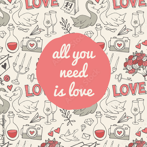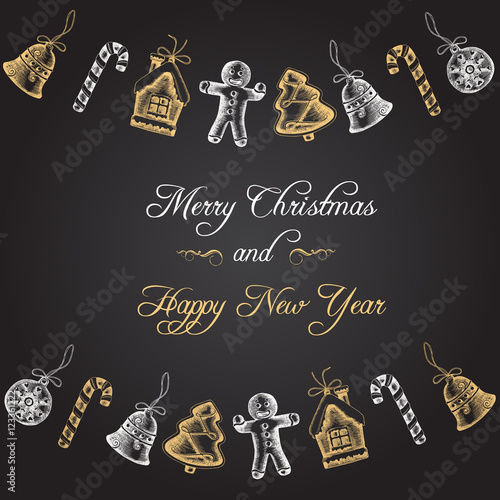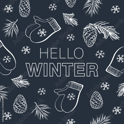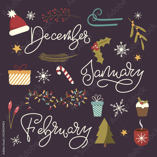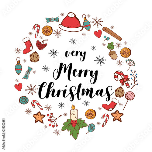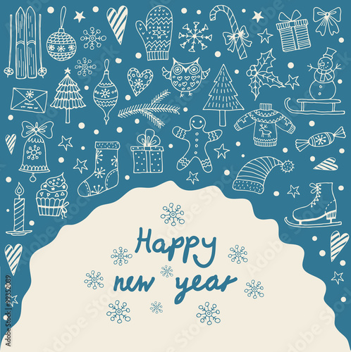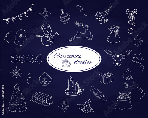 Праздничный набор бесшовных узоров на Рождество и Новый год. Векторная иллюстрация оберточной бумаги в стиле каракули. Графические иконки с глинтвейном и рождественскими элементами. Текстура фона.