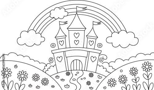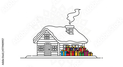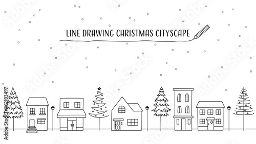 Баннер концептуальной линии праздничной рождественской елки. Векторная иллюстрация линейного стиля дизайна. Графические иконки с элементами игрушек и подарков