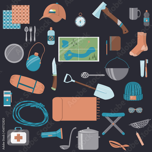 Предметы домашнего декора и мебели, изолированные на белом фоне. Дом уютных аксессуаров. Векторная иллюстрация.