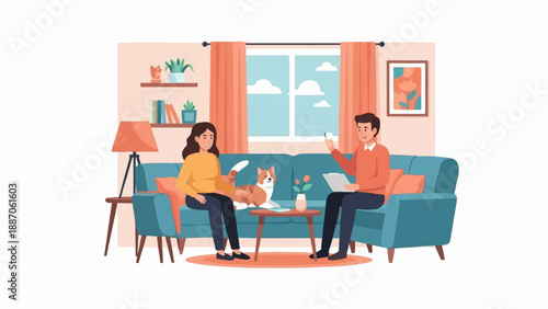 Продажа мебели для дома, векторная плоская иллюстрация. Специальные предложения, сезонные и праздничные скидки в мебельном магазине композиция для веб-баннера, страницы сайта и т.д.