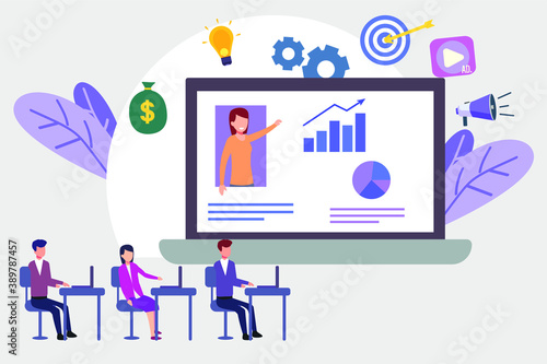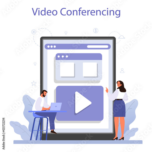 Профессиональная команда дизайнеров интерьера расставляет мебель на огромном экране портативного компьютера. Векторная концепция онлайн-услуг по дизайну интерьера для веб-баннера, страницы веб-сайта и т.д.