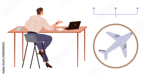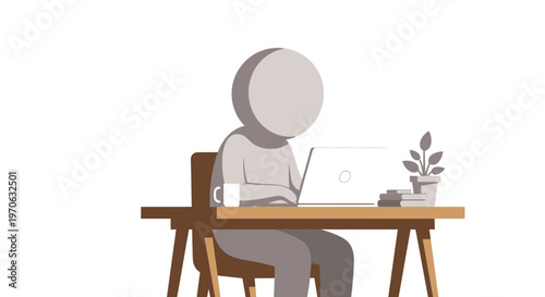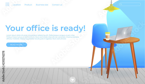 Интерьер домашнего офиса с журнальным столиком, портативным компьютером и векторным значком кресла, выделенным на белом фоне. Концепция вирусной пандемии.