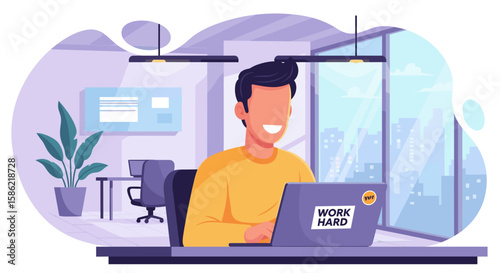 Вектор домашнего офиса. Молодая женщина-мультяшный персонаж, работающая на портативном компьютере. Женщина-фрилансер или студентка, общающаяся в онлайн-чате плоская иллюстрация