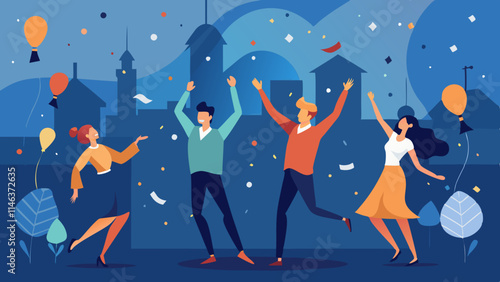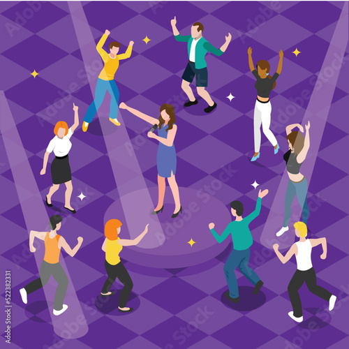 Домашняя вечеринка. Счастливые люди, друзья, танцующие, отдыхающие и веселящиеся, векторная плоская иллюстрация. Вечеринка по случаю дня рождения, домашняя дискотека.