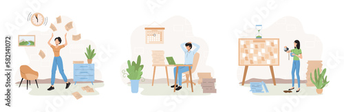 Дизайн целевой страницы по уходу за домашними растениями, набор шаблонов баннеров для веб-сайта, плоская векторная иллюстрация. Женщина поливает цветы в горшках в гостиной. Уход за комнатными растениями.