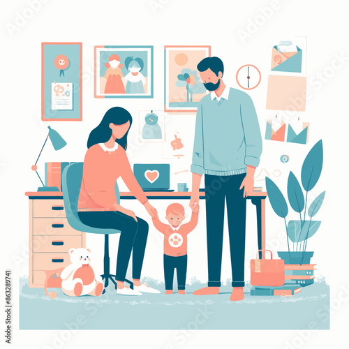 Ремонт и благоустройство дома. Ремонтник, бригада рабочих оклеивает обои, укладывает ламинат в гостиной, плоская векторная иллюстрация. Услуги разнорабочего. Ремонт дома.