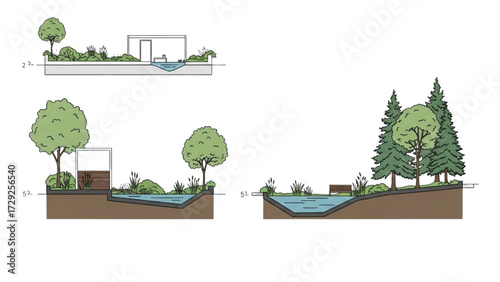 Вектор домашнего двора. Иллюстрация на заднем дворе дома. Фон сада, забора, газона, жилой квартиры и оборудования для барбекю