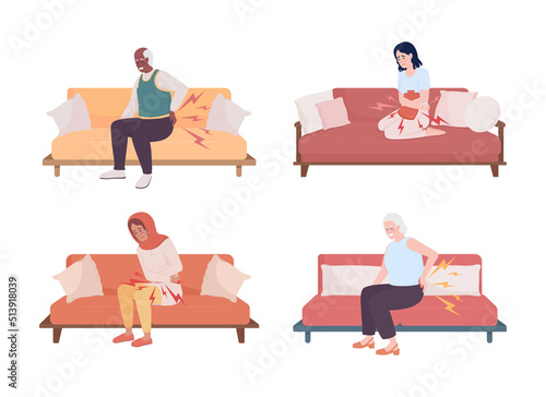 Волонтеры жертвуют одежду, оказывают медицинскую помощь, готовят еду бездомным людям, векторная плоская изолированная иллюстрация. Забота о бездомных, волонтерство и благотворительность.