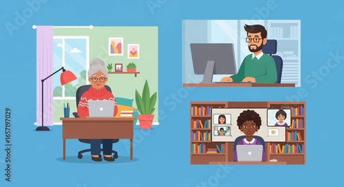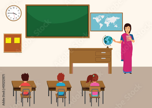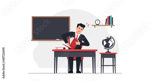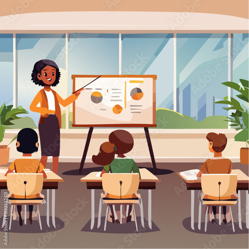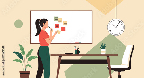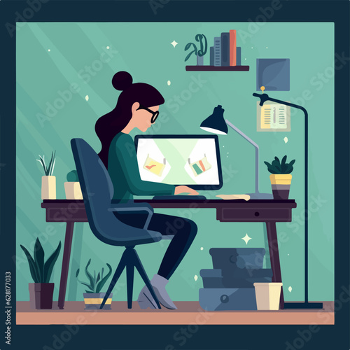 Векторная иллюстрация счастливой милой девушки, делающей домашнее задание. Дизайн в плоском стиле.