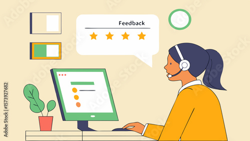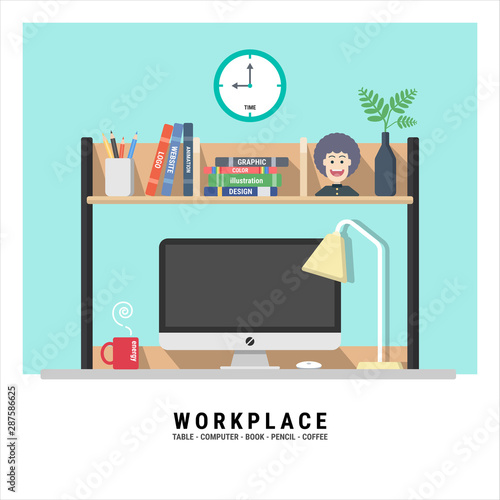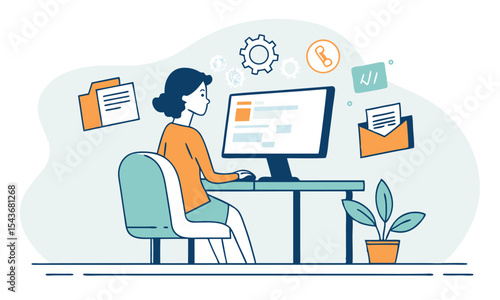 Векторная иллюстрация счастливой милой девушки, делающей домашнее задание. Элемент дизайна в плоском стиле, значок, выделенный на белом фоне.