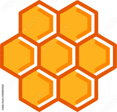 Векторная ячейка в форме шестиугольника в виде пчелиных сот. Мультяшная желтая пыльца в восковой иконке, изолированная на белом фоне. Иллюстрация логотипа пчеловодческого бизнеса