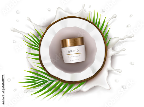Макет стеклянной банки для упаковки меда на подиуме, вырезанный из бумаги фон с милыми пчелами, цветами маргаритки, сотами, векторная иллюстрация. Натуральный сладкий сироп, органический мед, шаблон рекламы здорового питания.