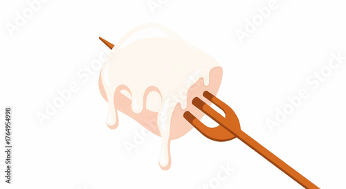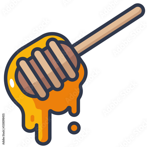 Векторная иллюстрация на палочке с медовой ложкой изолирована. Капающий золотистый сладкий медовый сироп из ковша для меда на белом фоне
