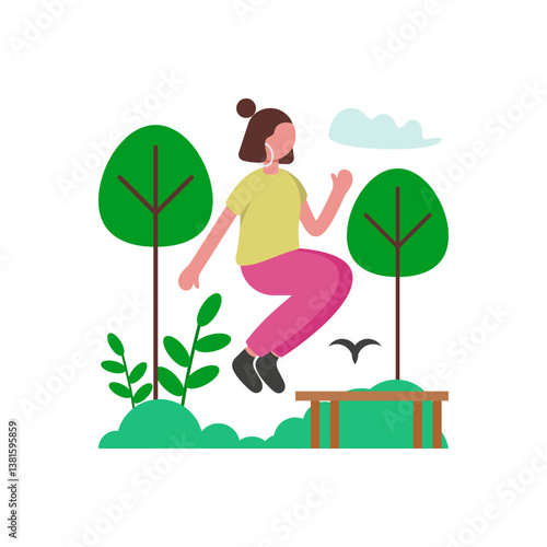 Векторная иллюстрация человека, отжимающегося на турнике в парке. Элемент дизайна в плоском стиле для тренировок на открытом воздухе.