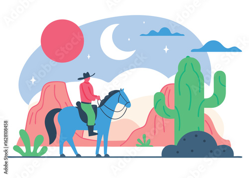 Векторная иллюстрация дизайна в плоском стиле для верховой езды. Скаковая лошадь с седлом, барьером для прыжков, гребнем, сапогами и подковой. Состав оборудования и снаряжения для конного спорта для веб-баннера, веб-страницы и т.д.