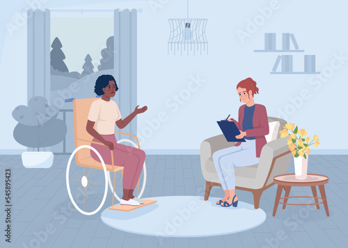 Интерьер больничной палаты, мужские персонажи, капельница, плоская векторная иллюстрация. Больной пациент, лежащий в постели и получающий внутривенную терапию, грустный родственник или друг, сидящий на стуле рядом с ним. Медицинское обслуживание пациентов.