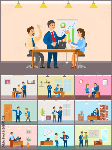 Набор шаблонов векторных баннеров общежития. Приемный зал, недорогие комфортабельные общие комнаты, кухня, прачечная. Бюджетные туристы, студенты, живущие в общежитии. Администратор, обслуживающий гостей. Гостиничный сервис.