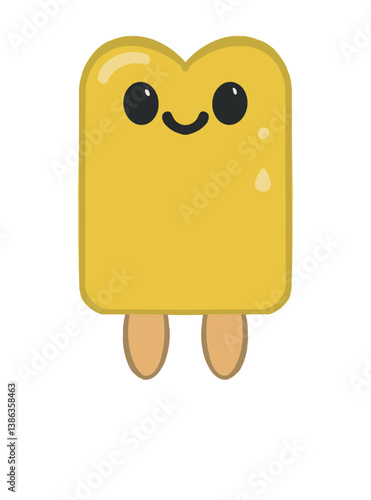 Векторный мультяшный персонаж хот-корн-дог. Жареная колбаса в тесте на палочке с горчицей, выделенная на белом фоне. Иллюстрация талисмана закусок быстрого приготовления корн-дог