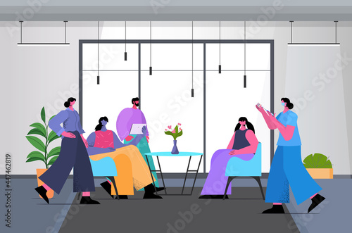 Гостиничный лифт, прибывающие и отбывающие гости и носильщик с тележкой для багажа, плоская векторная иллюстрация. Обслуживание клиентов отеля. Индустрия гостеприимства.