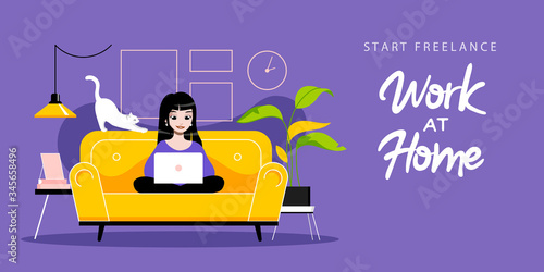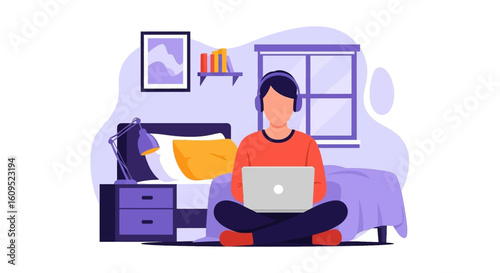 Векторная иллюстрация горничной, застилающей постель в гостиничном номере. Гостиничный сервис, уборка номеров элемент дизайна в стиле квартиры.