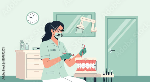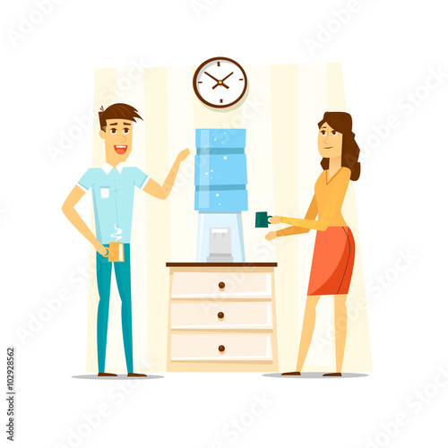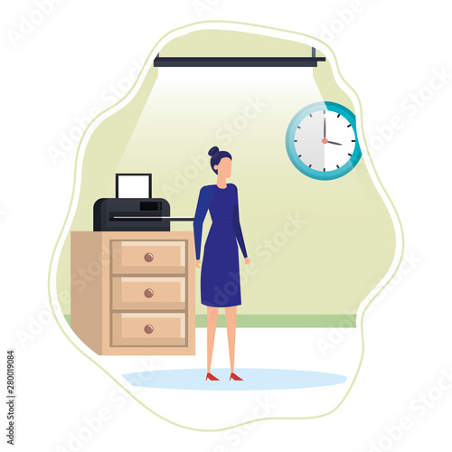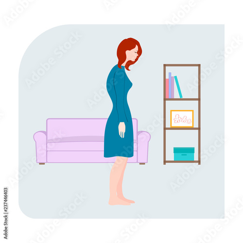 Горничная отеля стоит рядом с тележкой с чистым постельным бельем и полотенцами. Элемент дизайна в плоском стиле отеля people, значок, выделенный на белом фоне.