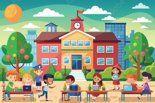 Векторная иллюстрация отеля, египетского курорта на пляже с бассейном, баром, шезлонгами, пальмами и отдыхающими туристами. Элемент дизайна концептуальной квартиры в стиле поездки в Египет.