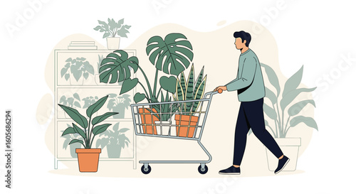 Векторная иллюстрация посыльного, посыльного или посыльного, перемещающего тележку с чемоданами клиента. Элемент концептуального дизайна гостиничного портье в плоском стиле.