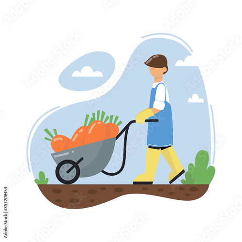 Гостиничный портье, специалист по гостеприимству, помогающий гостю мужского пола с его багажом, плоская векторная изометрическая иллюстрация. Доставка багажа, гостиничные услуги.