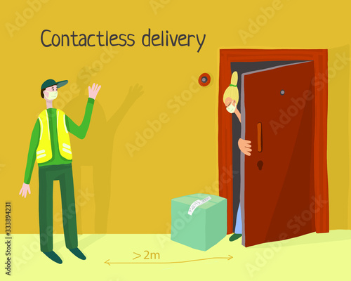 Векторная иллюстрация мужчины-администратора гостиничного работника, стоящего за стойкой регистрации и разговаривающего по телефону. Элемент дизайна в плоском стиле отеля people, значок, выделенный на белом фоне.