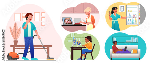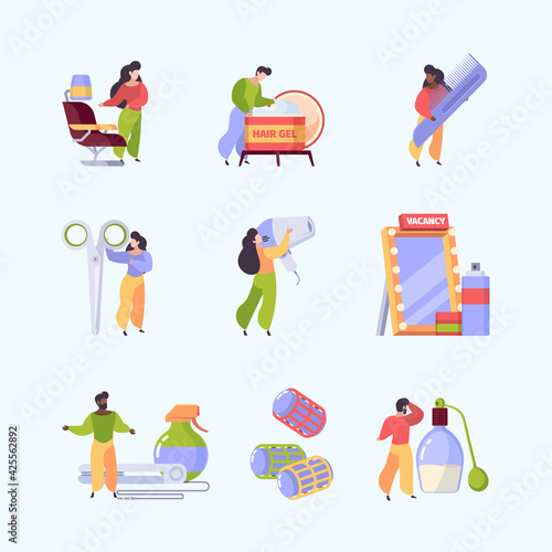 Векторная иллюстрация работников гостиничного сервиса: администратор, горничная, носильщик, швейцар, уборщица, гость мужского пола и т.д. Набор иконок для людей в отеле, изометрический вид, дизайн в плоском стиле.