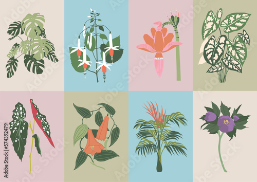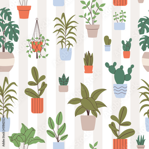 Домовые растения векторная иллюстрация. Дом с цветами и растительным внутренним убранством. Женщина занимается садоводством и выращивает комнатные растения дома.