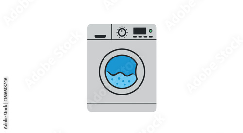 Векторная плоская иллюстрация бытовой техники. Ручной смартфон с приложением дистанционного управления, умная бытовая техника стиральная машина, пылесос, кондиционер, фен, утюг. Технология "умного дома".
