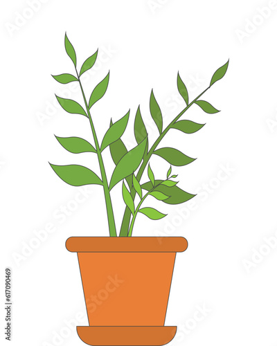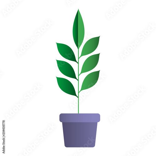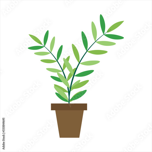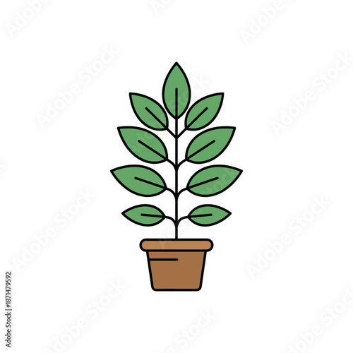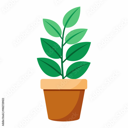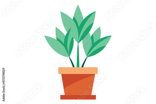 Вектор комнатного растения. Домашний садовый цветок в горшке с зеленым листом на плоской иконке стебля. Мультяшное украшение комнаты, изолированное на белом фоне. Иллюстрация цветочного горшка