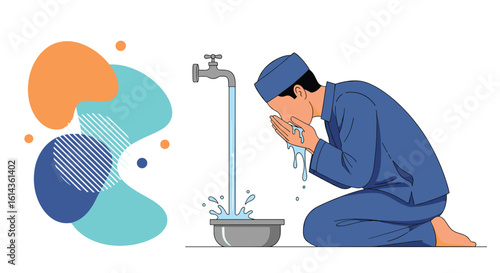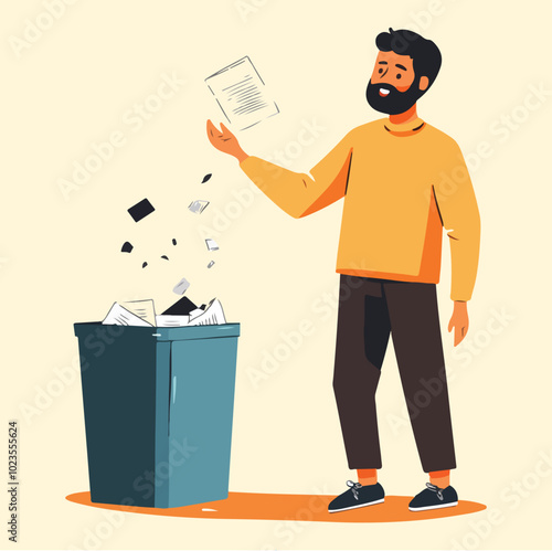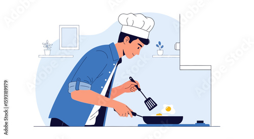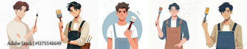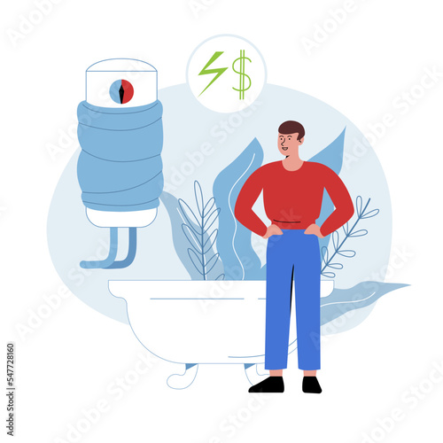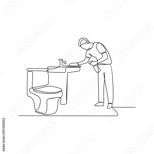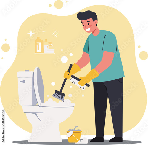 Мужчина, работающий по дому, чистит туалет бантом векторная иконка, изолированная на белом фоне