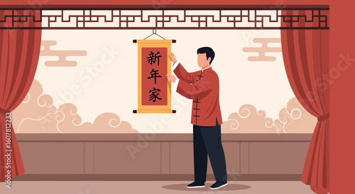 Мужчина, работающий по дому, складывает одежду в шкаф векторная иконка, изолированная на белом фоне