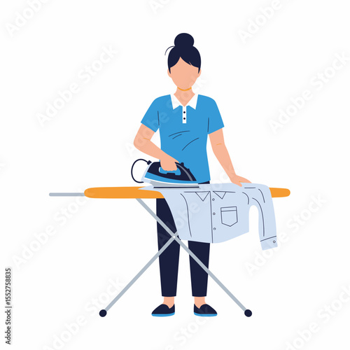 Человек, работающий по дому, гладящий одежду, векторный значок, изолированный на белом фоне