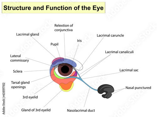 Диаграмма человеческого глаза, офтальмологическая инфографика по уходу за глазами, векторная плоская изолированная иллюстрация. Инструменты офтальмолога, контактные линзы, очки, питание для здорового зрения, тренировочные упражнения, правильное осветление