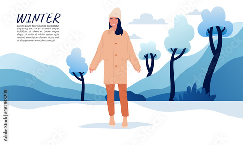 Человеческие пальцы, указывающие на грустную женщину с избыточным весом, стоящую на весах, плоская векторная иллюстрация. Социальное давление, позор толстых, концепция жертвы травли.