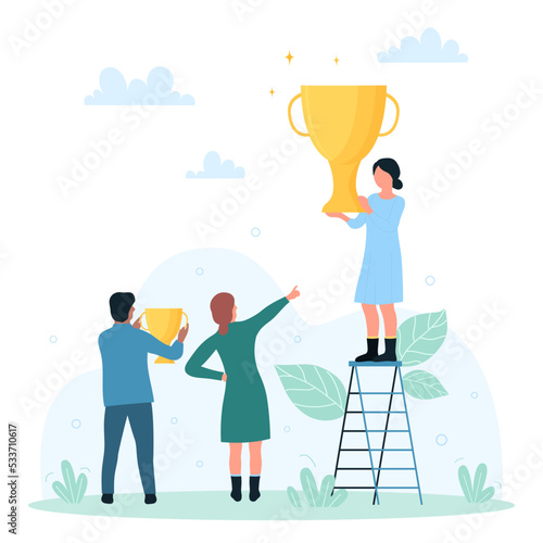 Гигантская рука помощи, деловые мужчина и женщина, крошечные мультяшные персонажи, символ сердца, плоская векторная иллюстрация. Человеческая рука, помогающая достичь цели в бизнесе. Концепция благотворительности и социальной поддержки.
