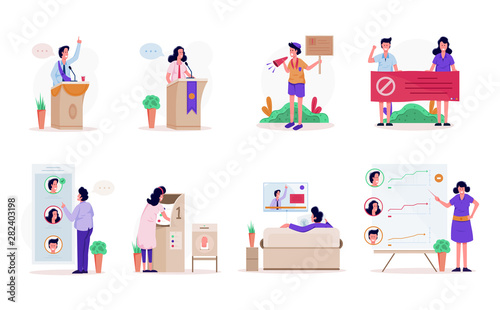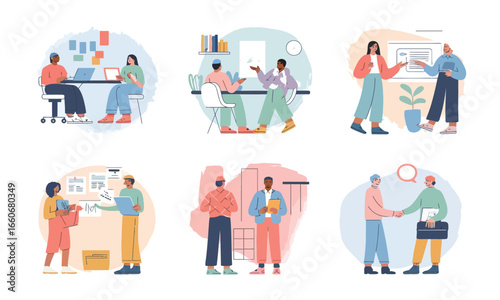 Персонажи гуманитарной помощи, векторная плоская изолированная иллюстрация. Волонтеры, нуждающиеся люди, ящики для пожертвований с едой, одеждой, медикаментами, грузовик с гуманитарной помощью. Социальная поддержка, волонтерство.