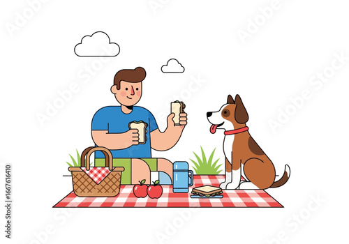 Собака заглядывает внутрь холодильника с плоской мультяшной векторной иллюстрацией. Голодное домашнее животное ищет еду. Любопытный питомец крадет еду из холодильника