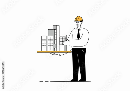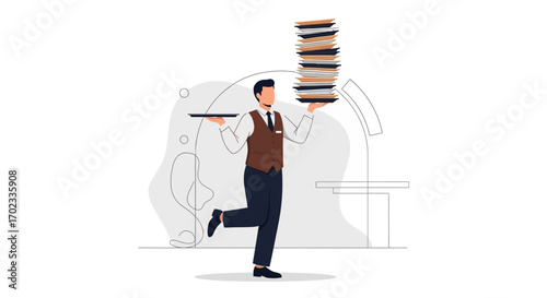 Векторная иллюстрация охотника, держащего кролика в одной руке и винтовку в другой. Элемент дизайна в плоском стиле Hunter people, значок, выделенный на белом фоне.
