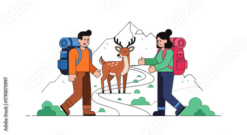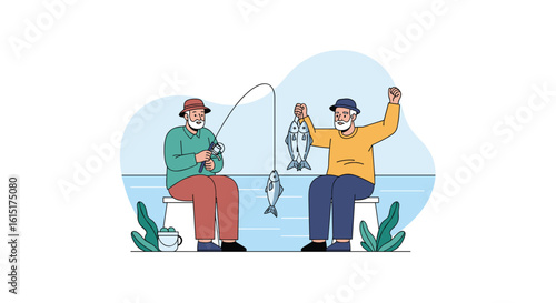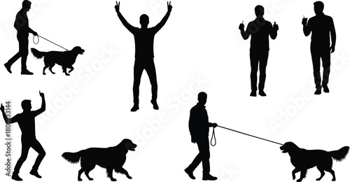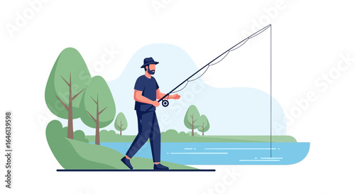 Векторная иллюстрация охотника с охотничьим снаряжением, рыбака с удочкой, людей, собирающих чернику и яблоки. Элементы дизайна в плоском стиле Hunter people, значки, выделенные на белом фоне.