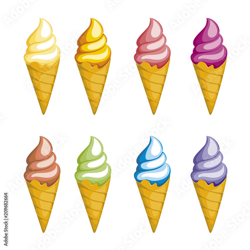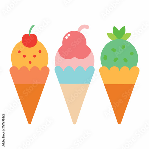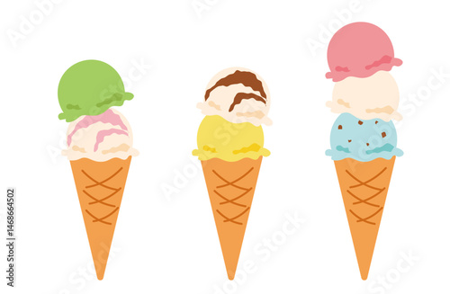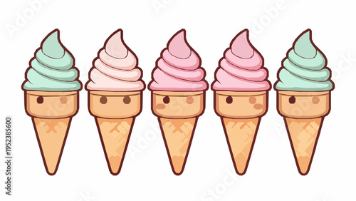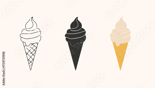 Набор значков рожка мороженого. Векторная иллюстрация в стиле бумажного искусства. Оригами тающее мороженое. Летний фон, плакат, баннер, шаблон дизайна листовки.