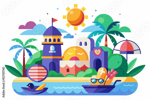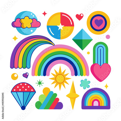 Пластиковое ведро для упаковки мороженого, ванна, макет контейнера, вырезанное из бумаги небо с облаками, воздушными шарами и радугой, векторная иллюстрация. Натуральный полезный сладкий десерт, шаблон рекламы молочных продуктов.